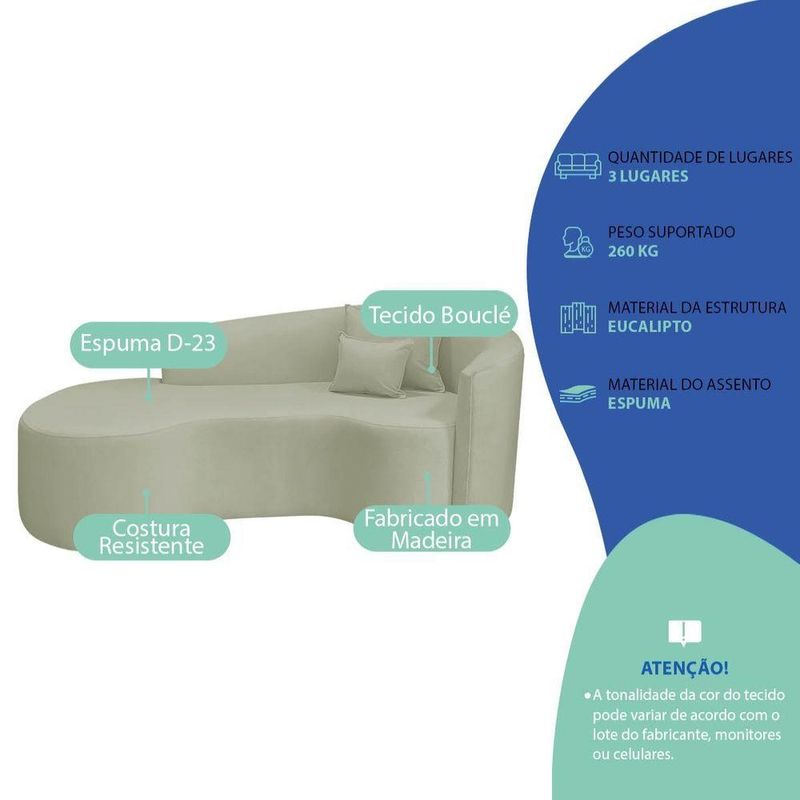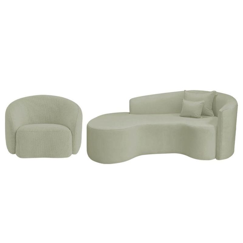 Kit Recamier Curvo Sala De Estar Inglaterra 180cm Lado Esquerdo E Poltrona Orgânica Luxo Amore Bouclé Verde Oliva