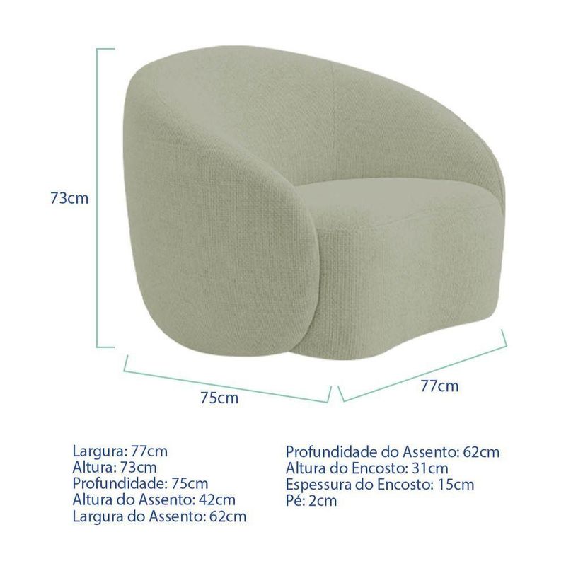 - Peso Suportado: 260 Kg.Especificações Técnicas da Poltrona Amore:Largura: 77cm