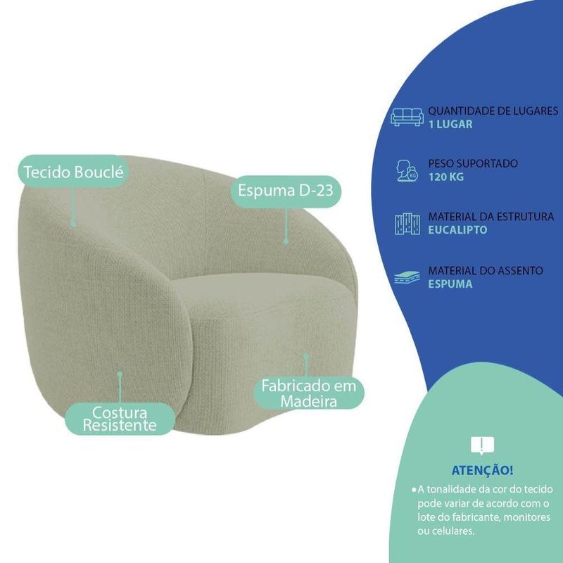 - Tipo de Encosto: estofado e com espuma D-23;Diferenciais da Poltrona Amore:- Material da Estrutura: fabricado com Madeira Pinus e Eucalipto Reflorestada, e alguns detalhes em MDF;