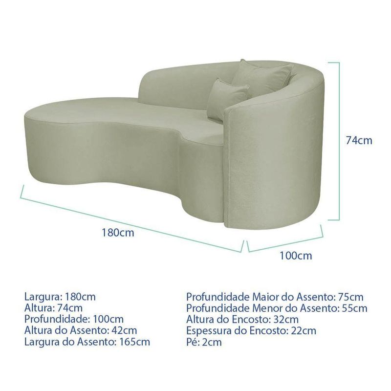 Em busca de móveis que unam beleza, conforto e sofisticação? O Recamier Inglaterra e a Poltrona Amore formam uma combinação ideal para transformar seu ambiente. O recamier, com seu design curvo e acabamento refinado, traz charme e elegância, além de uma estrutura sólida que garante conforto e durabilidade. A Poltrona Amore, com linhas suaves e um design orgânico, oferece uma experiência luxuosa e convidativa, agregando ainda mais estilo ao espaço. Juntos, esses móveis criam uma atmosfera acolhedora e sofisticada, perfeita para quem deseja um lar repleto de charme, conforto e personalidade.Especificações Técnicas do Recamier Curvo Inglaterra:- Altura: 74 cm;