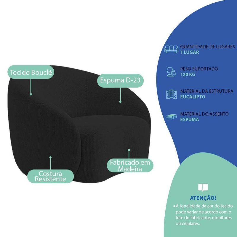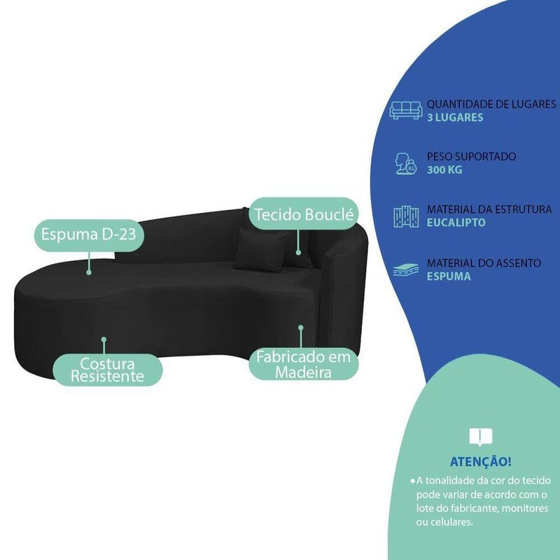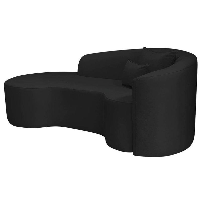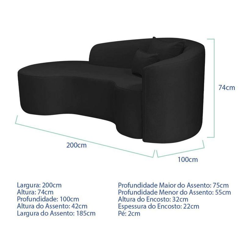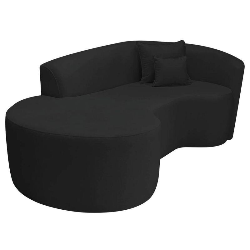 Kit Recamier Curvo Sala De Estar Inglaterra 200cm Lado Esquerdo Poltrona Orgânica Luxo Amore Bouclé Preto Velluto