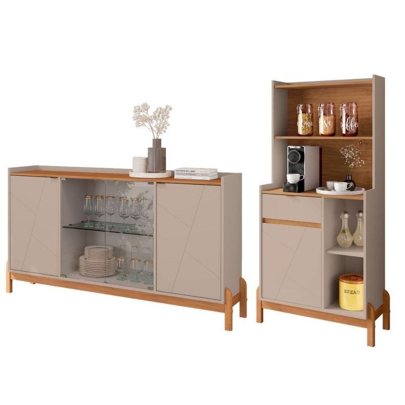 Esse Conjunto é essencial para aqueles que procuram designs modernos na decoração de seu ambiente.O Buffet é um produto para quem procura um design inovador garantindo a elegância do seu ambiente.Feito em MDP/MDF. Possui 4 portas sendo 2 de vidro e 3 prateleiras sendo uma de vidro.O Aparador é um produto para quem procura um design inovador garantindo a elegância do seu ambiente.Feito em MDP/MDF 15/25mm. Possui 1 gavetas com corrediças telescópicas, 2 prateleiras e 1 porta.Dimensão do Buffet:Altura: 90,5 cmLargura: 168 cmComprimento: 36 cmInformações do Buffet:Cor: Off White/CedroPortas: Sim (4) 2 de vidroPés: Sim (4) Madeira maciçaPrateleira: Sim (3) 1 de vidroPuxadores: Sim (2) AçoMaterial Principal: MDP/MDFDimensão do Aparador:Altura: 160 cmLargura: 81 cmProfundidade: 36 cmInformações do Aparador:Cor: Off White/CedroPortas: Sim (1) MDFGavetas:Sim (1) Corrediça telescópicasPés: Sim (4) Madeira maciçaPrateleira: Sim (2)Puxadores: Sim (1) AçoMaterial Principal: MDP/MDF 15/25mmItens Inclusos:1 Buffet1 AparadorManual de MontagemKit completo para montagem e manual de instruções:3 meses contra de fabricaçãoInformações Adicionais:- Fotos meramente ilustrativas do produto no ambiente.- Os objetos que ambientam as fotos não acompanham o produto;- Verificar descrição e tamanho do produto antes da compra.- Avaliar a mercadoria no ato do e recuse em caso de divergência ou .- Mantenha as informações de e de atualizados para entrarmos em caso necessário.- Limpar com flanela ou pano macio seco, não utilizar produtos abrasivos, desengordurantes, álcool ou solvente. Não expor o produto diretamente à luz solar e à umidade.* Sugerimos a contratação de um montador para a montagem do produto. Não nos responsabilizamos por causadas no ato da montagem.* Não nos responsabilizamos pela montagem e desmontagem do produto no ato da e , assim como os custos gerados nestas situações.* A transportadora entregará o produto no andar térreo do de .* Não nos responsabilizamos por subir escadas, corredores e elevadores ou por guincho em apartamento