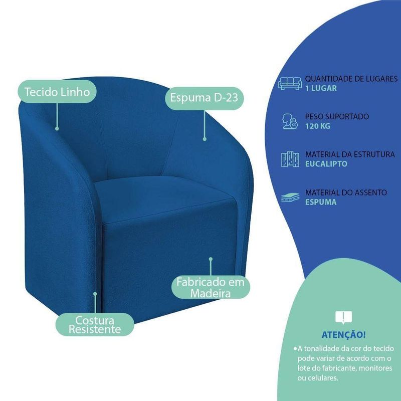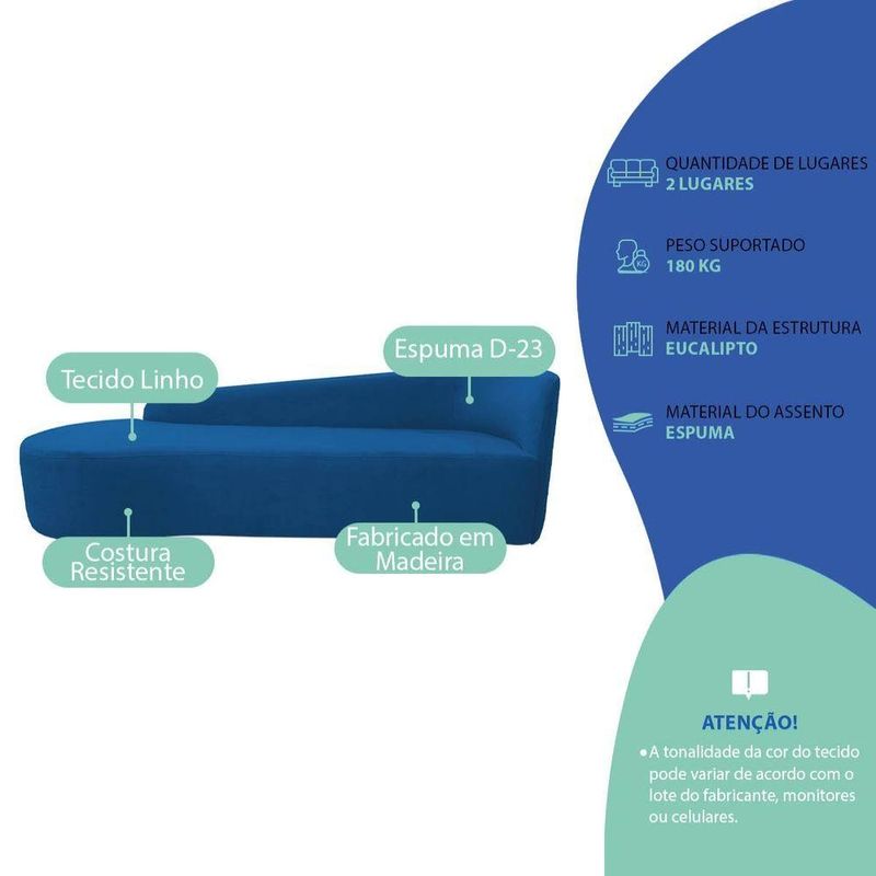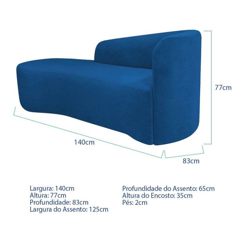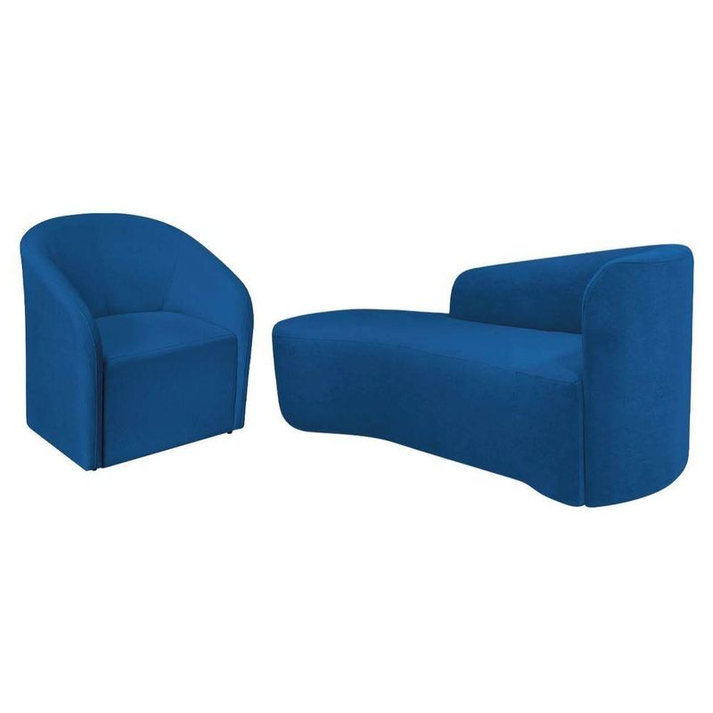 Kit Sofá Curvo França 140cm L.e E Poltrona Luiza Max Conforto, Elegância E Design Moderno Linho Azul Royal