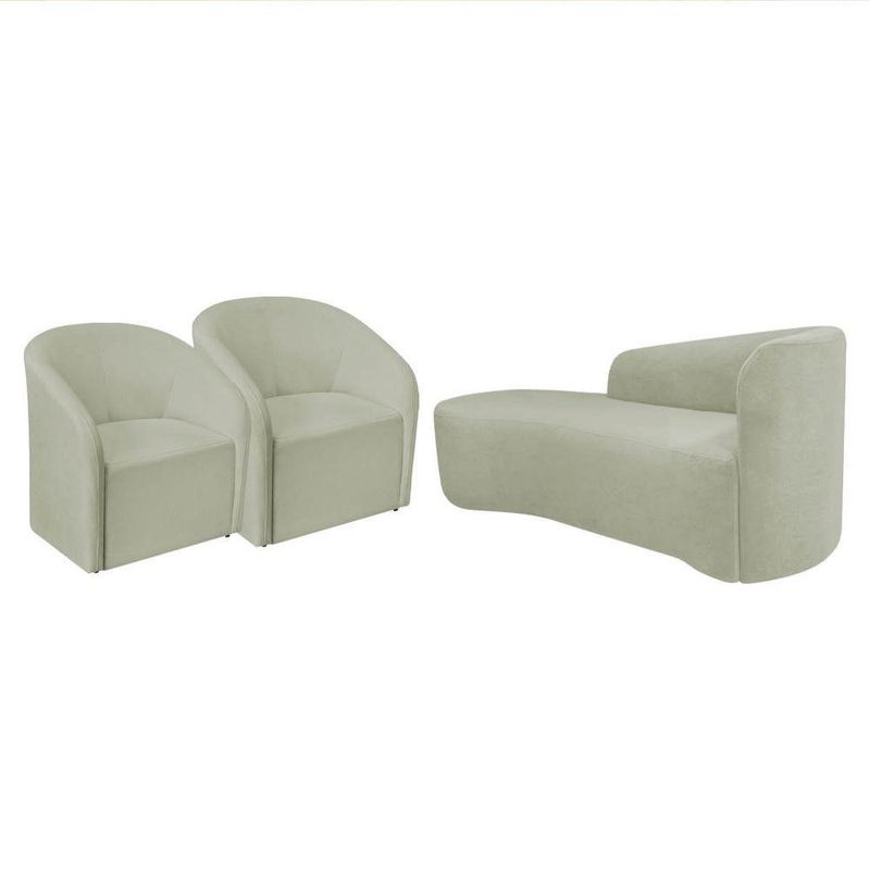 Kit Sofá Curvo França 160cm L.e E 2 Poltronas Luiza Max Conforto, Elegância E Design Moderno Bouclé Verde Oliva