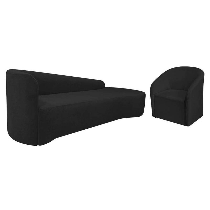 Kit Sofá Curvo França 180cm Ld. E Poltrona Luiza Max Conforto, Elegância E Design Moderno Bouclé Preto