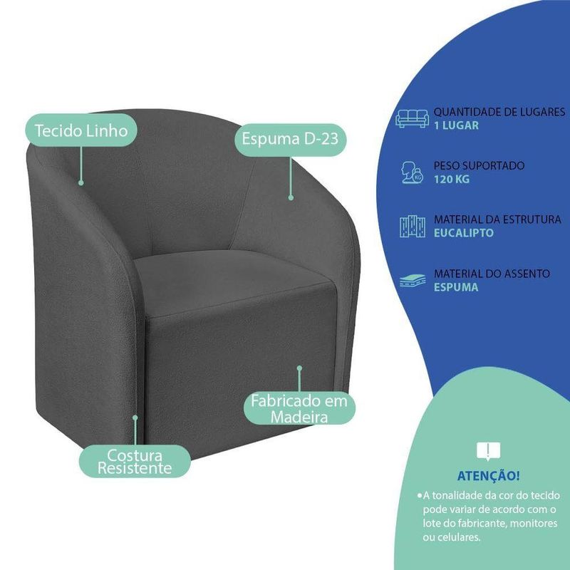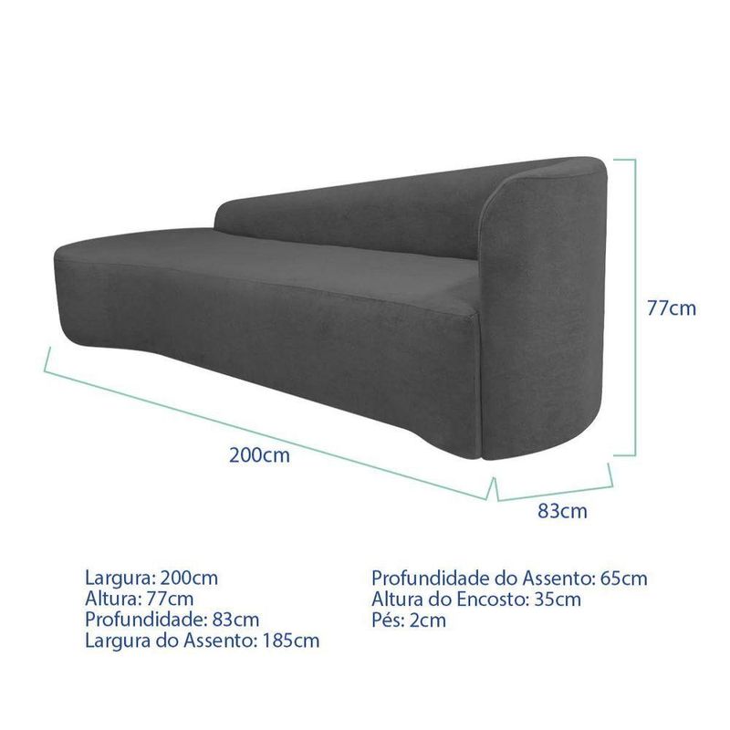 Kit Sofá Curvo França 200cm L.e E 2 Poltronas Luiza Max Conforto, Elegância E Design Moderno Linho Cinza Escuro