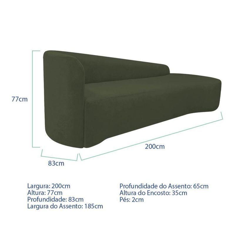 Kit Sofá Curvo França 200cm Ld. E Poltrona Luiza Max Conforto, Elegância E Design Moderno Linho Verde