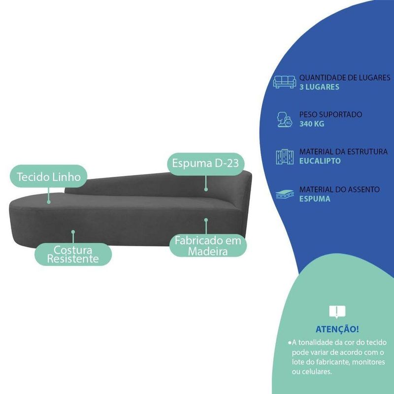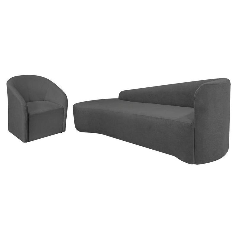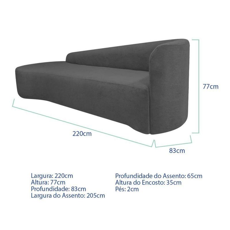 Kit Sofá Curvo França 220cm L.e E Poltrona Luiza Max Conforto, Elegância E Design Moderno Linho Cinza Escuro