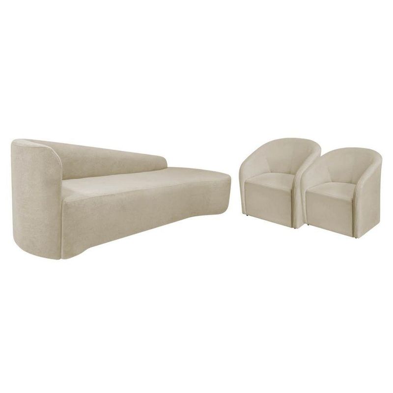 Kit Sofá Curvo França 220cm Ld. E 2 Poltronas Luiza Max Conforto, Elegância E Design Moderno Linho Bege