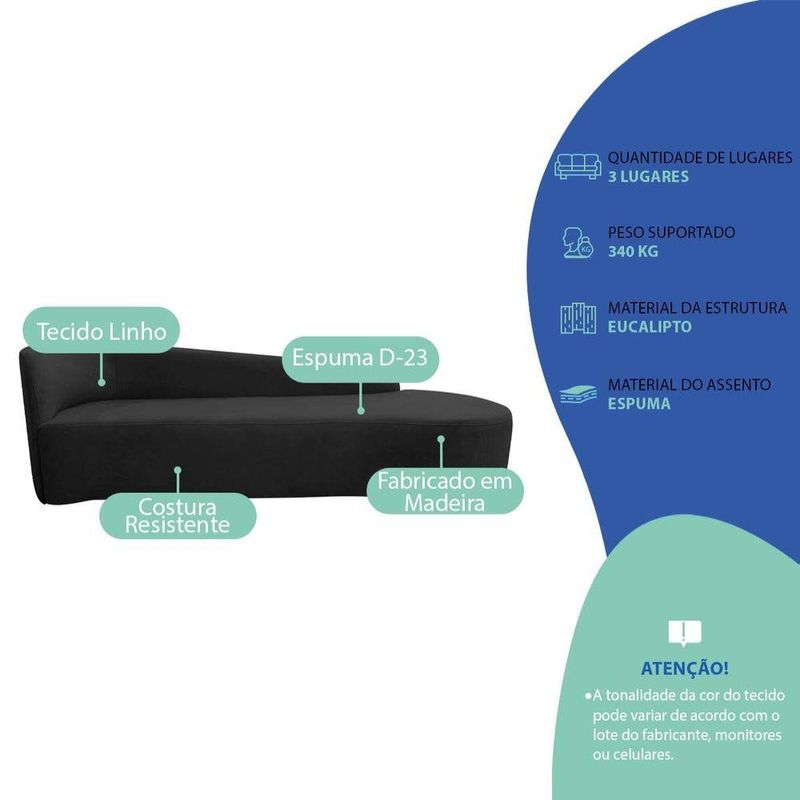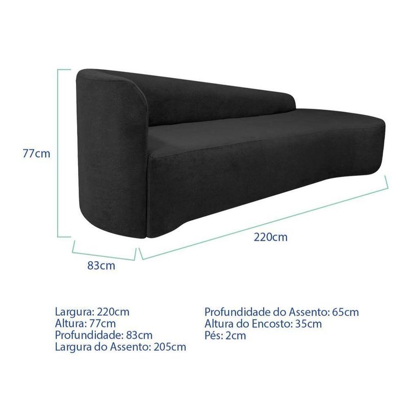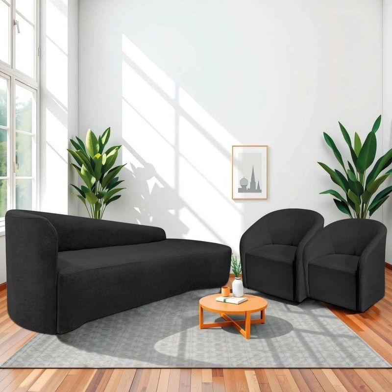 Kit Sofá Curvo França 220cm Ld. E 2 Poltronas Luiza Max Conforto, Elegância E Design Moderno Linho Preto