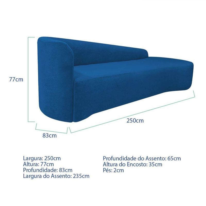 Kit Sofá Curvo França 250cm Ld. E 2 Poltronas Luiza Max Conforto, Elegância E Design Moderno Linho Azul Royal