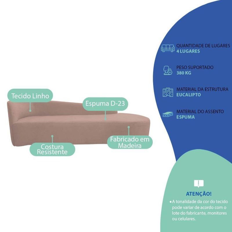 Kit Sofá Curvo França 250cm Ld. E 2 Poltronas Luiza Max Conforto, Elegância E Design Moderno Linho Rosê