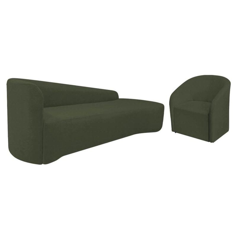 Kit Sofá Curvo França 250cm Ld. E Poltrona Luiza Max Conforto, Elegância E Design Moderno Linho Verde
