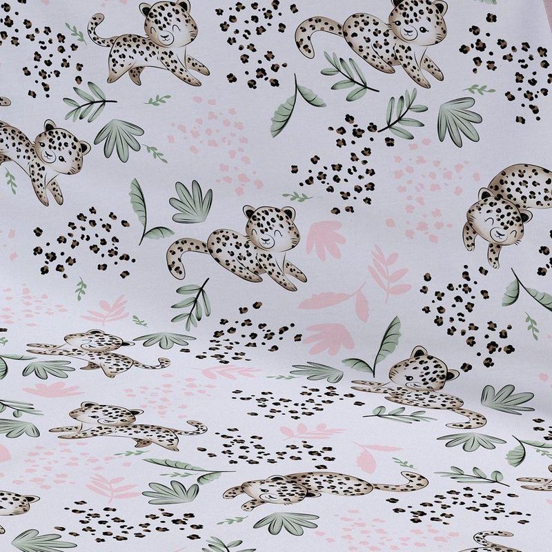 Delicadeza em cada detalhes nesta estampa. A combinação do rosa claro com os bebes onças, Trazem ao quarto do bebe uma atmosfera cheia de Amor e Doçura.