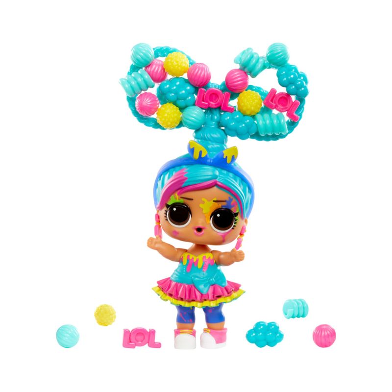 Apresentando as bonecas LOL Surprise Hair Beads Tot! Este novo padrão de brincadeira permite que você faça seus próprios penteados personalizados e montáveis de Hair Beads para seus pequenos usando apenas contas e água! Esses pequenos estão prontos para exibir seus penteados de contas de cabelo que você criou!