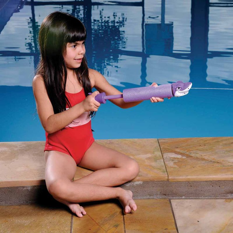 O Lança-água Animal, além dos rostos ferozes, traz também a cauda do Tubarão, Jacaré, Dragão e Baleia. Nas cores azul, laranja, verde e roxo, é um brinquedo super divertido e prático, que vai render muitas risadas durante os banhos de piscina da garotada.Produzido em polietileno expandido e polipropileno mede 33cm de comprimento quando fechado e seu jato alcança aproximadamente 8 metros de distância. Recomendado para crianças acima de 3 anos, é garantia de muita folia na água!
