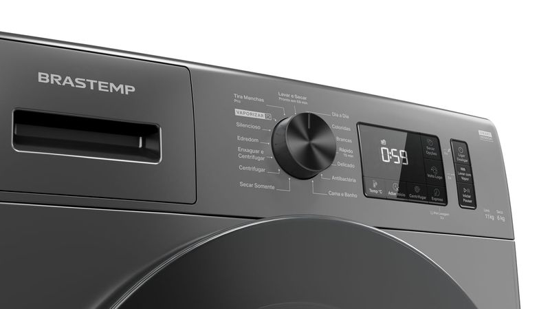 A Lava e Seca Brastemp Titanium 11kg/6kg BNO11AS combina modernidade e praticidade em um só produto. Com capacidade de lavar até 11kg e secar 6kg, é perfeita para famílias que precisam de performance sem abrir mão de espaço. O design na cor titanium traz sofisticação para a lavanderia, enquanto os ciclos inteligentes ajustam automaticamente o tempo e a intensidade conforme o tipo de tecido. A função de secagem elimina a necessidade de varal, garantindo roupas prontas para uso em menos tempo. Além disso, o painel intuitivo facilita o uso, oferecendo recursos que preservam as fibras dos tecidos, reduzem odores e amassados, proporcionando economia de tempo e mais comodidade para o dia a dia.