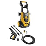 - Acompanha: pistola de alta pressão com trava de segurança, ponteira para regular o jato de saída de água, ponteira turbo, mangueira de alta pressão, engate rápido e filtro para sucção de água.