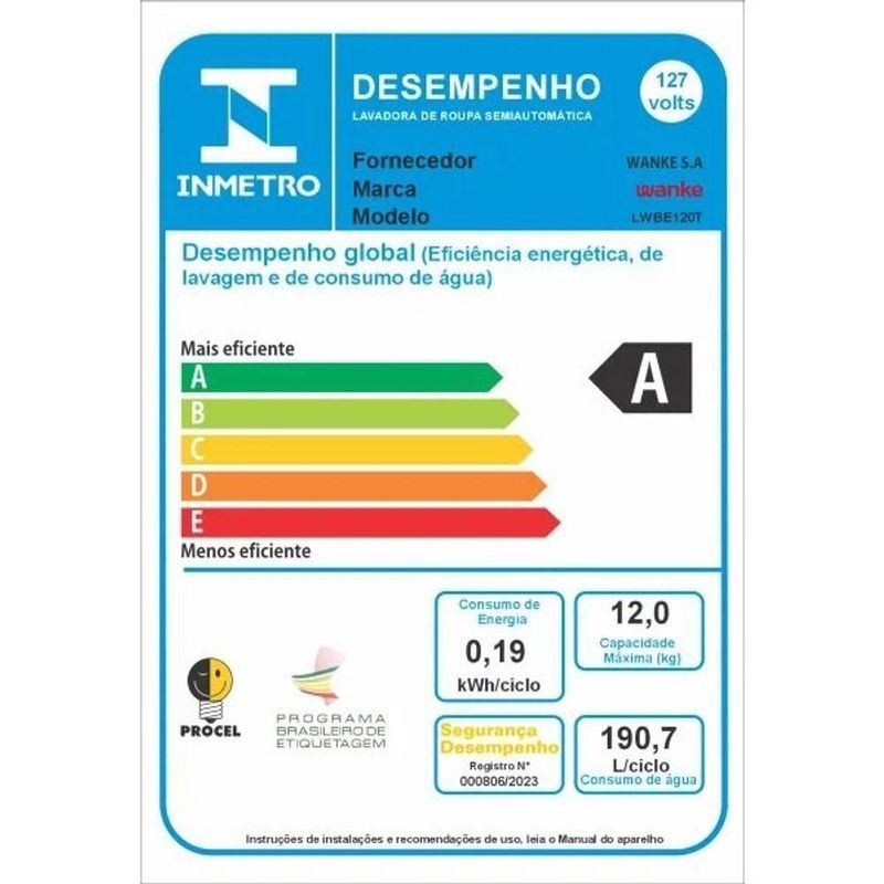 Lavadora De Roupas Semiautomática Comfort - 12 Kg - Branca - Wanke - 220v