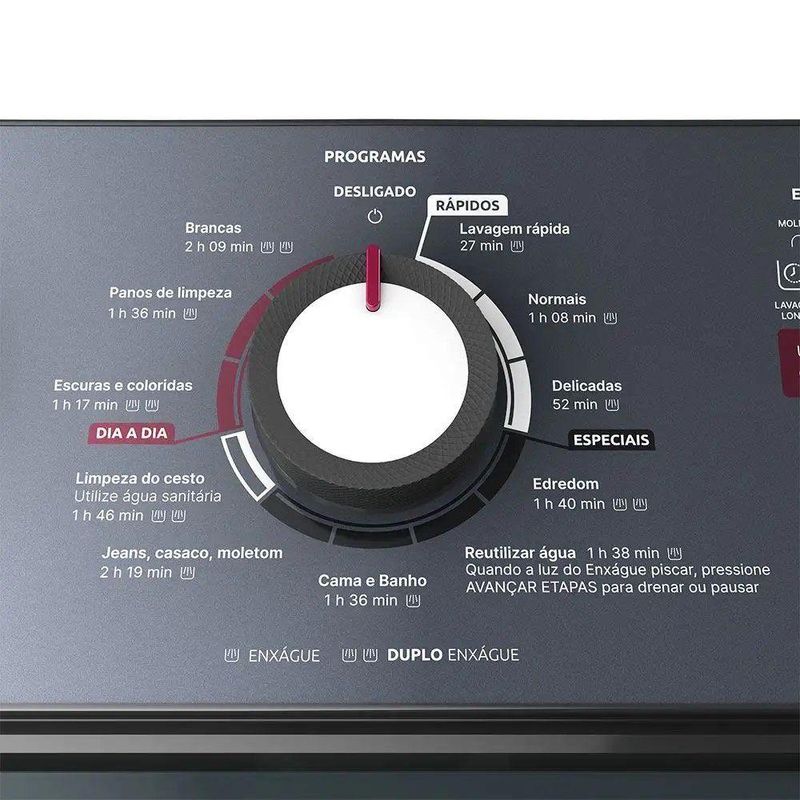 - Dispenser: Gaveta com compartimentos específicos para sabão em pó ou líquido, amaciante e alvejante.