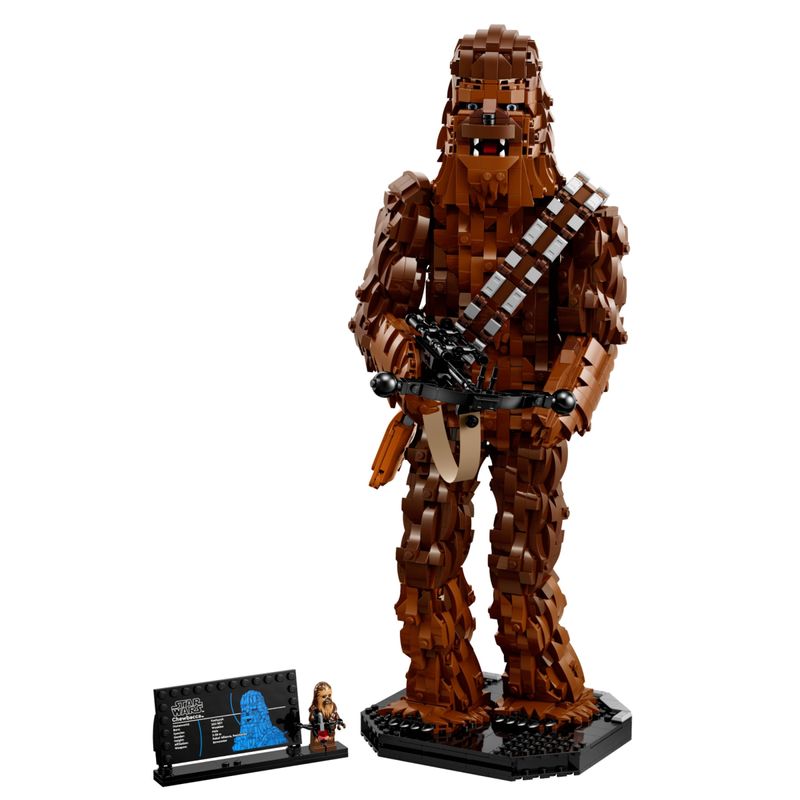 Um personagem de Star Wars construível criado para fazer um grande impacto visual Esta figura do Chewbacca construída com peças LEGO® mede mais de 46 cm de altura
