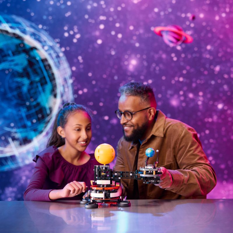 Modelo interativo – Inspire as crianças a construir uma representação da Terra, do Sol e da Lua em órbita com este brinquedo de construção LEGO® Technic™ Planeta Terra e Lua em Órbita para crianças a partir de 10 anos