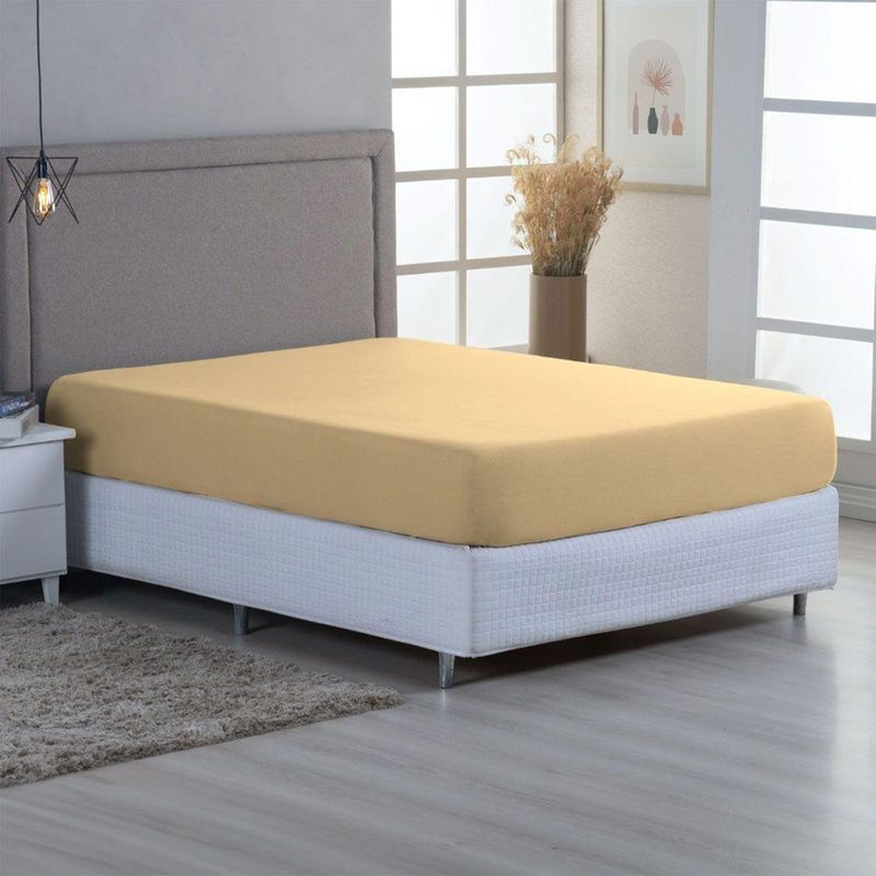 Lençol De Baixo Minimal Solteiro Avulso Com Elástico 01 Peça Malha 100% Algodão - Mostarda