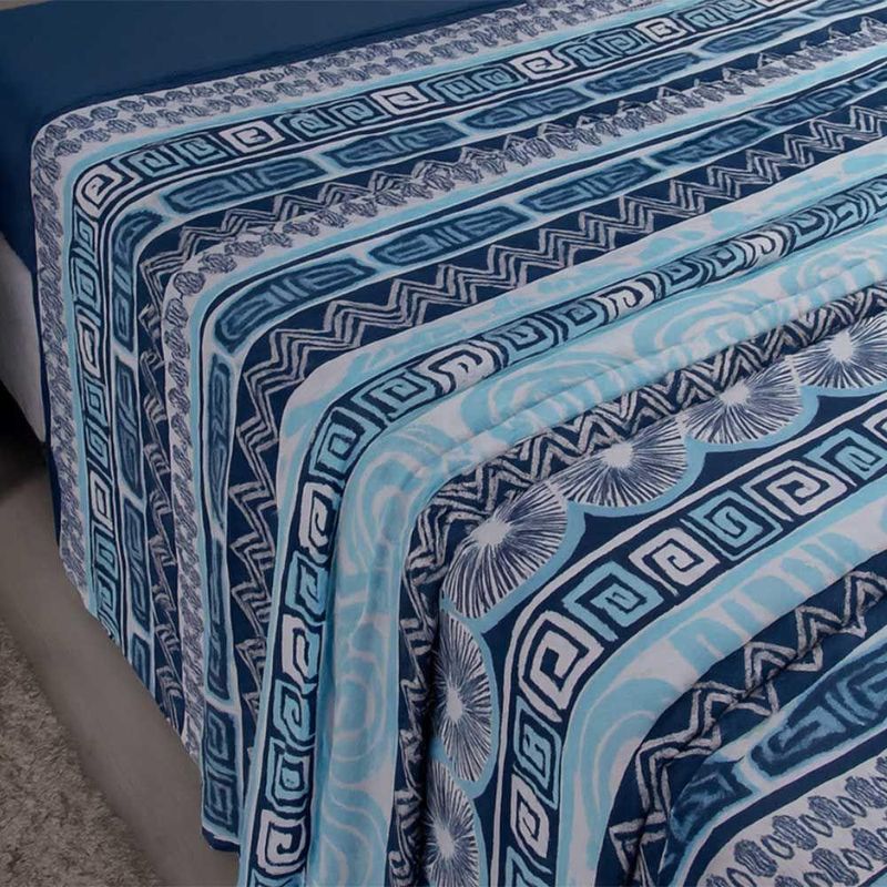 Lençol De Cima Avulso Luar Estampado Casal 01 Peça Malha 100% Algodão - Azul Marinho Geométrico