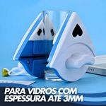 Projetado para vidros com até 3mm de espessura, o dispositivo conta com esponja e rodo integrados, além de uma corda de segurança que garante total proteção durante o uso em locais altos. Leve e fácil de manusear, é ideal para ambientes residenciais, comerciais ou apartamentos.
