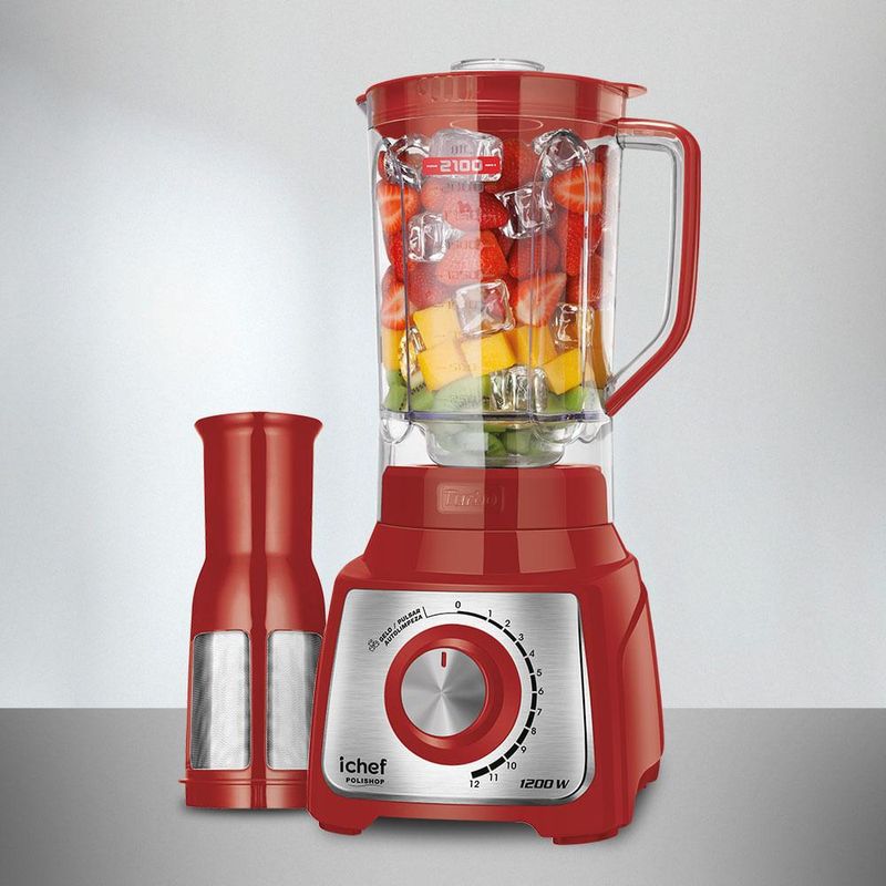 E com o Liquidificador Turbo Inox RED ICHEF POLISHOP, você tem mais rapidez e agilidade, graças a sua potência de 1200 Watts, e consegue atender a família toda, porque ele tem 3 litros de capacidade total!