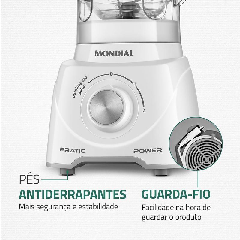 COPO SUPER-RESISTENTEO copo do liquidificador Pratic Power é super-resistente a quedas e riscos, garantindo mais segurança e durabilidade. Além disso, seu novo design possui encaixe seguro, rápido e fácil.
