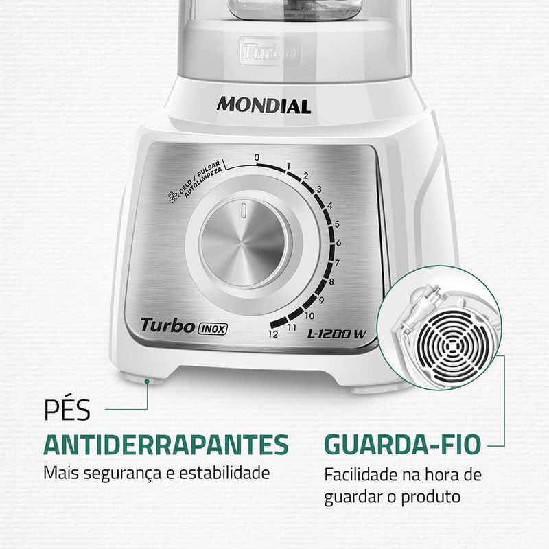 EletroportáteisLiquidificadorLiquidificador Turbo Mondial Branco e Inox 1200W L-1200 WI