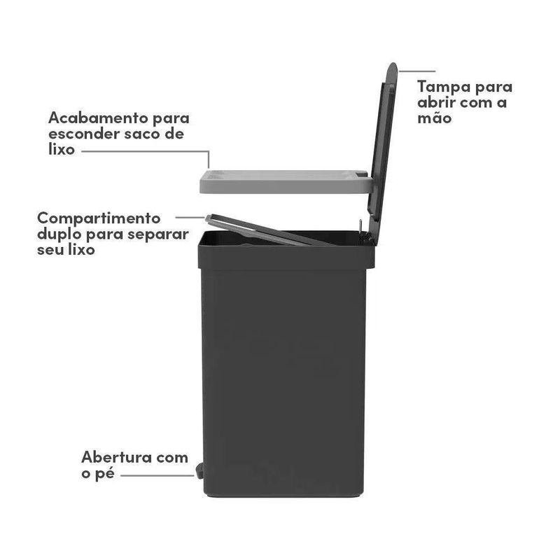 Lixeira Com Pedal Trium 20 L Com Duplo Compartimento Preto Ou