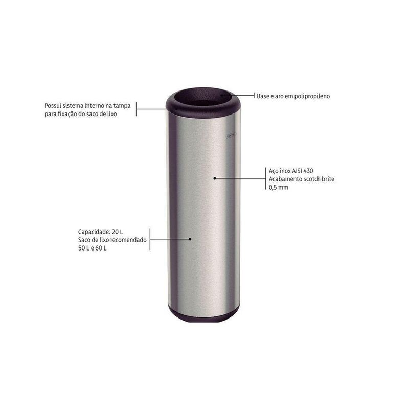 Capacidade: 20 LSaco de lixo Tramontina: 40 L, letra KSaco de lixo recomendado: 40 - 60 LTodas as imagens são meramente ilustrativas.