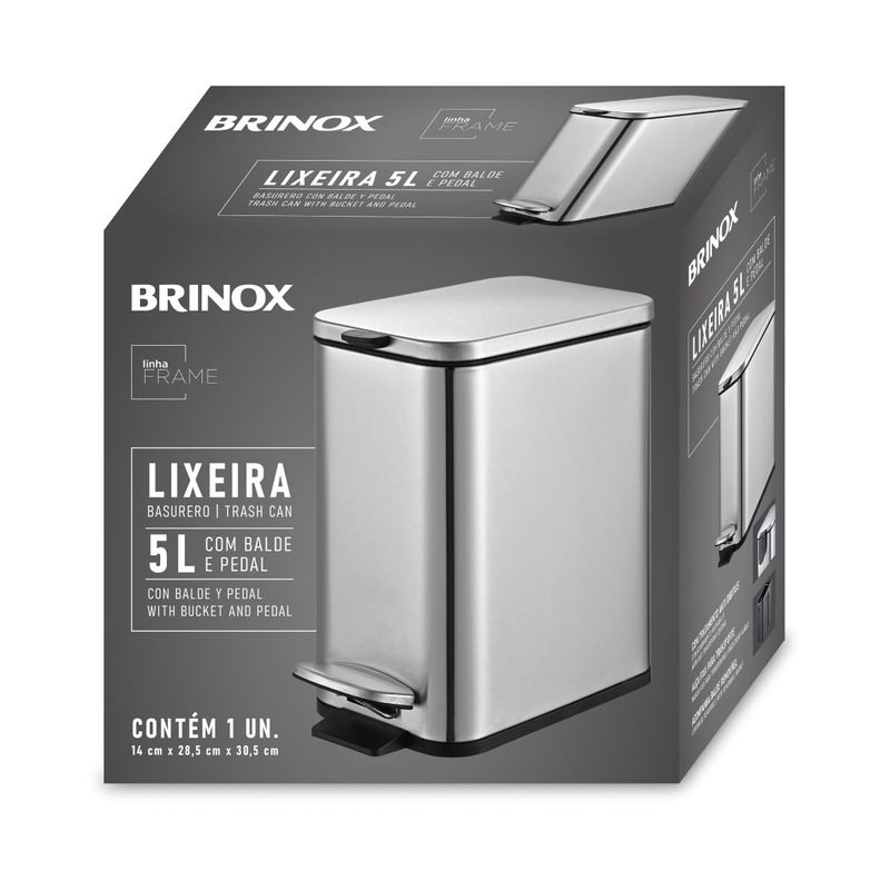 Para deixar o dia a dia mais prático, a Lixeira Retangular com Pedal e Balde 5 L Frame/Brinox é uma excelente opção, pois ajuda a manter os ambientes limpos e organizados.