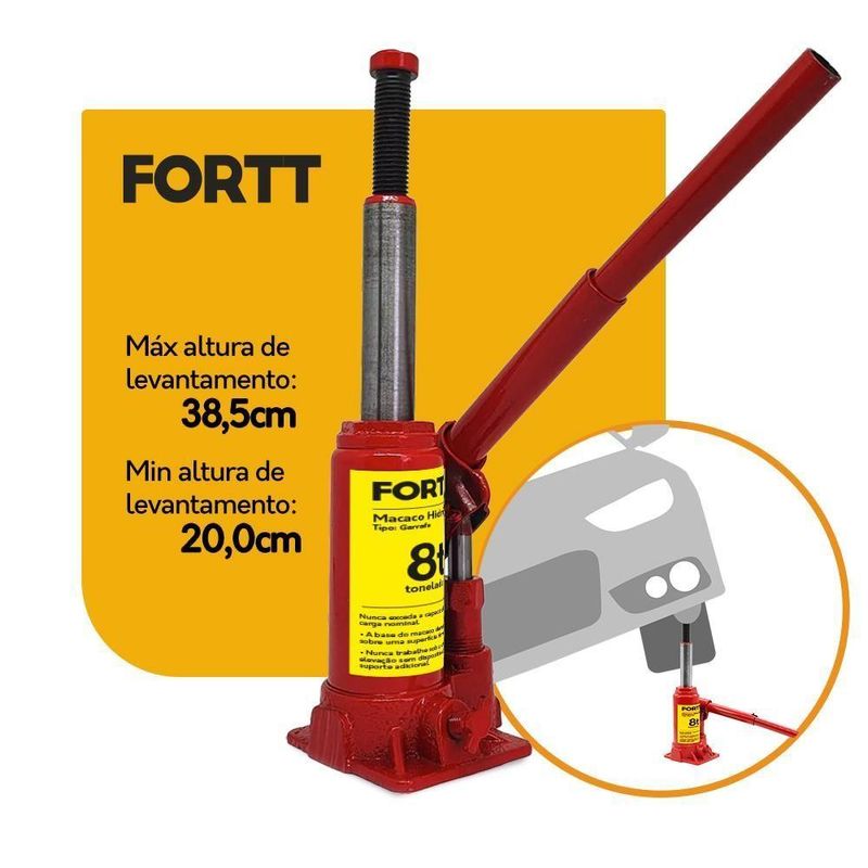 Macaco Hidráulico Tipo Garrafa 8 Ton Fortt Vermelho - Mhg001-8ton