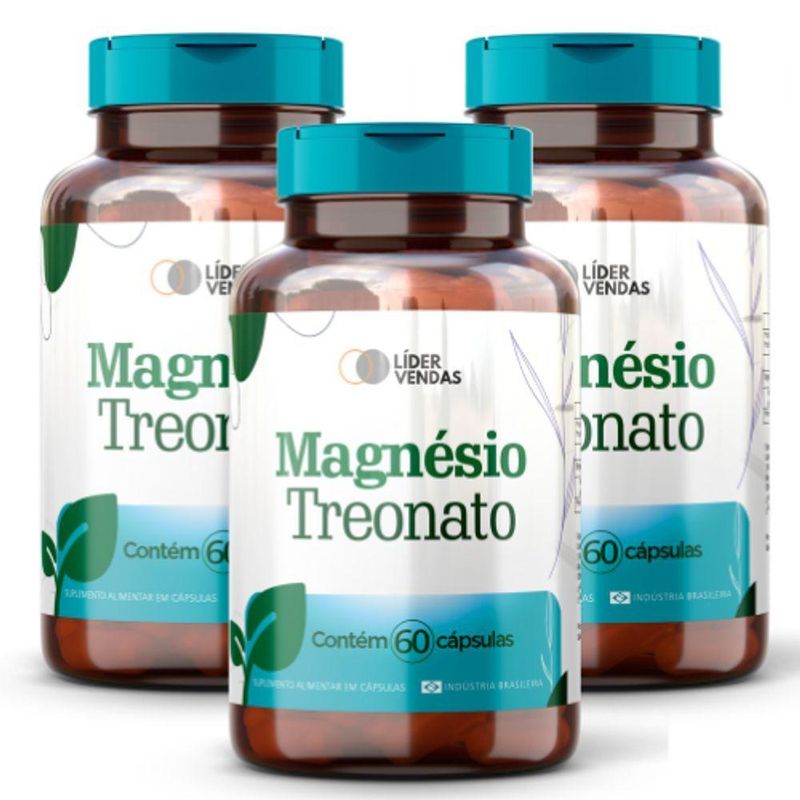 Magnésio Treonato 500mg - 60 Cáp. - 3 Potes Para Saúde Mental E Bem-estar!