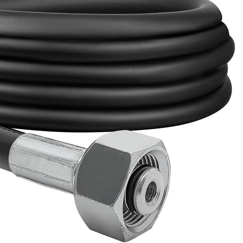 Mangueira de Alta Pressão para Lavadoras, com reforço interno em nylon, altamente resistente e ível com conectores resistentes a oxidação.