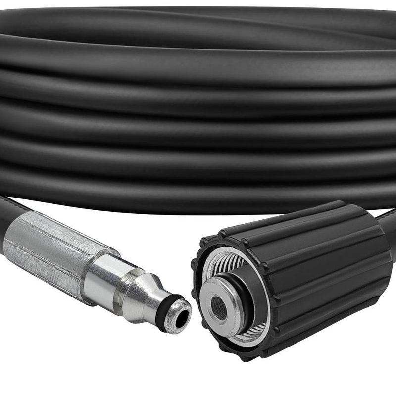 Mangueira de Alta Pressão para Lavadoras, com reforço interno em nylon, altamente resistente e ível com conectores resistentes a oxidação.