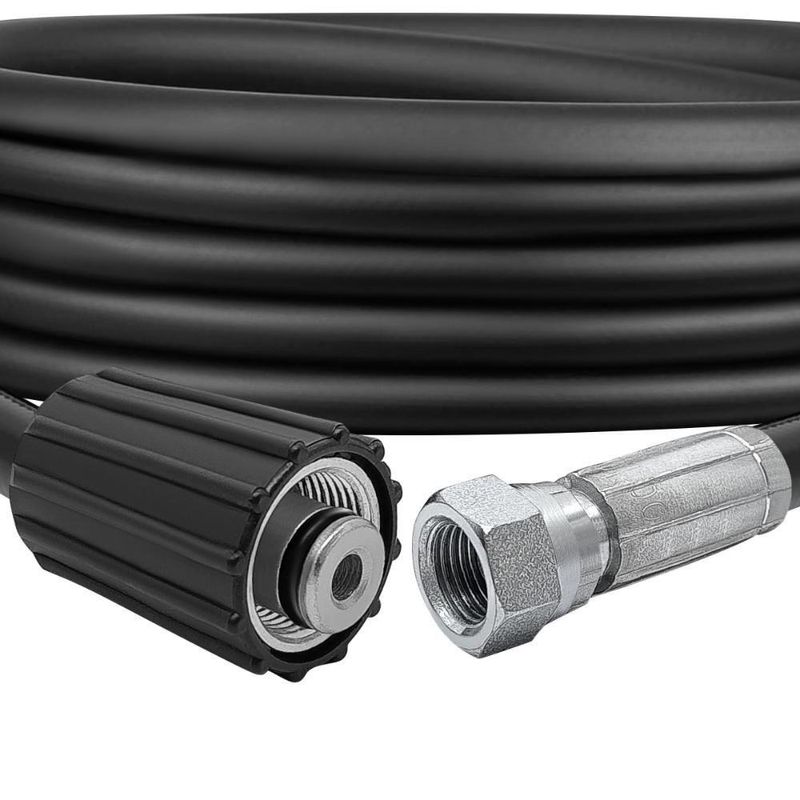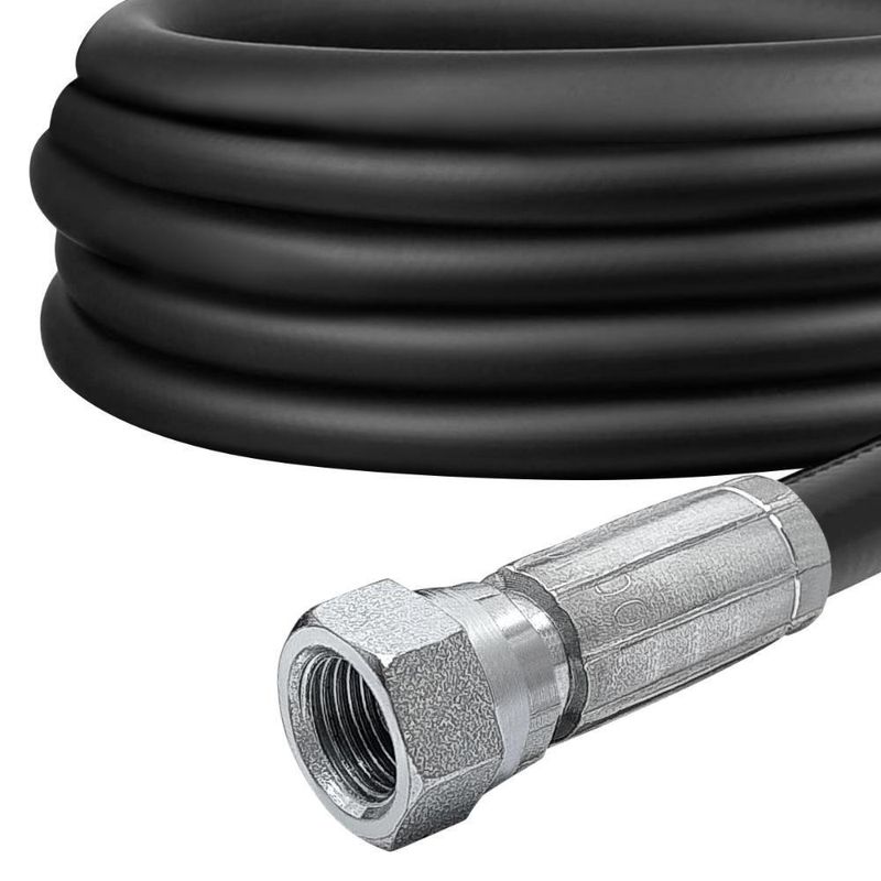 Mangueira de Alta Pressão para Lavadoras, com reforço interno em nylon, altamente resistente e ível com conectores resistentes a oxidação.