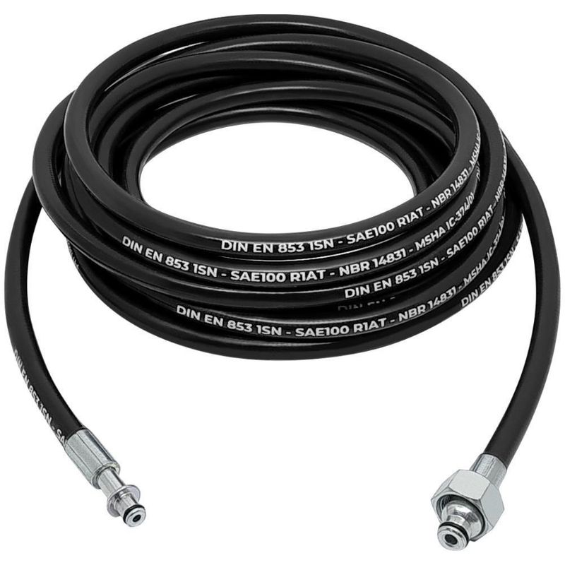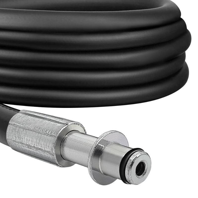 Mangueira de Alta Pressão para Lavadoras, com trama interna em aço, recoberta com borracha sintética, altamente resistente e flexível com conectores resistentes a oxidação.