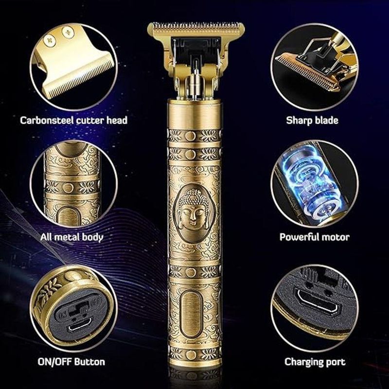 Maquina Cabelo Barba Profissional Dourada Dragão Recarregvel