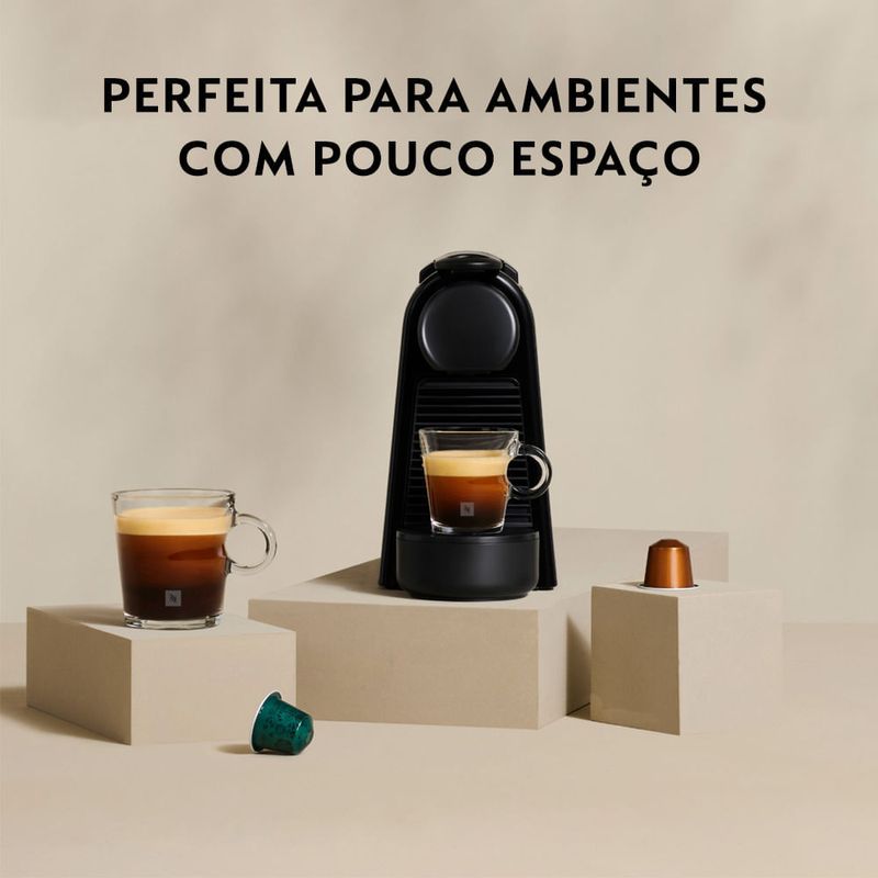 Se prefere mais movimento, o design triangular. A Essenza Mini, com duas opções de modelo, é a menor cafeteira Nespresso e dá um toque de personalidade a todos os estilos e decorações.