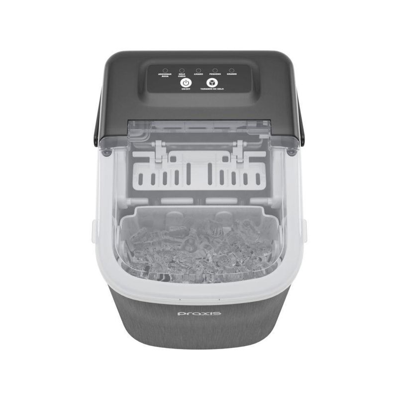 Máquina de Gelo MGP12 / MGP12SS PraxisSe você busca praticidade e agilidade na hora de produzir gelo para suas bebidas, eventos ou uso diário, a Máquina de Gelo MGP12 / MGP12SS da Praxis é a escolha perfeita. Compacta, moderna e altamente eficiente, ela traz toda a comodidade de ter gelo sempre à mão, sem depender de formas ou sacos de gelo comprados separadamente.A Máquina de Gelo MGP12 / MGP12SS foi desenvolvida para entregar até 12 kg de gelo em 24 horas, garantindo suprimento constante para diversas ocasiões. Seu ciclo de produção de apenas 9 minutos proporciona rapidez, enquanto o reservatório de 1,2 litros otimiza o armazenamento de água.Com potência de 112 W e operação em frequências de 50/60 Hz, o equipamento está disponível na versão 127v, adequando-se facilmente a diferentes ambientes.Características:Marca: Praxis