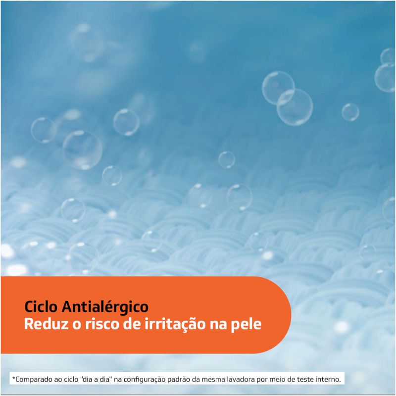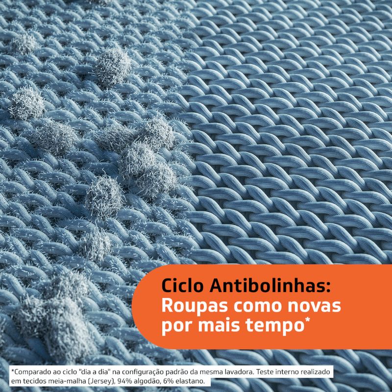 Lavagem com agitação suave que reduz a formação de bolinhas nas roupas durante o processo, mantendo-as com aparência de novas por mais tempo.
