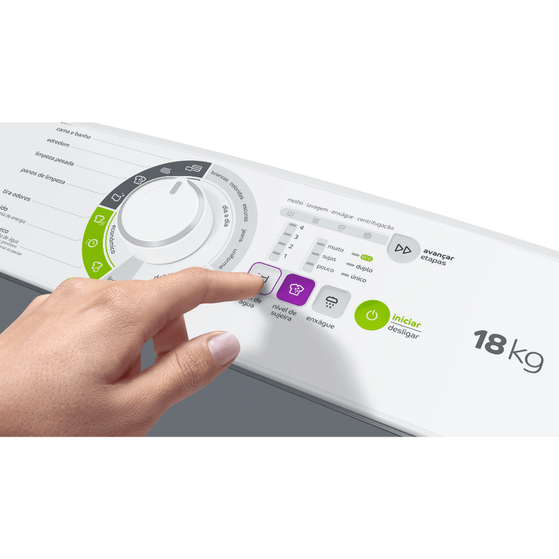 A nova Máquina de Lavar Consul 18kg conta com a Lavagem Econômica que permite a reutilização da água usada na lavadora para outros usos na sua casa, economizando recursos do planeta, com a praticidade da Régua de Nível Fácil que te ajuda a saber o nível correto de água, basta olhar na régua dentro do cesto, e lava até seu edredom king size [1].