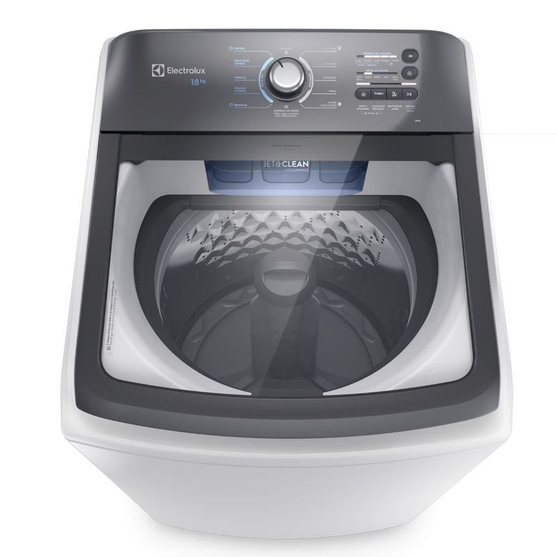 Máquina de Lavar Electrolux 18kg Branca Efficient Cesto inox e Jet&Clean (LEE18), alta performance e alta capacidade em uma máquina compacta que faz as roupas durarem mais.
