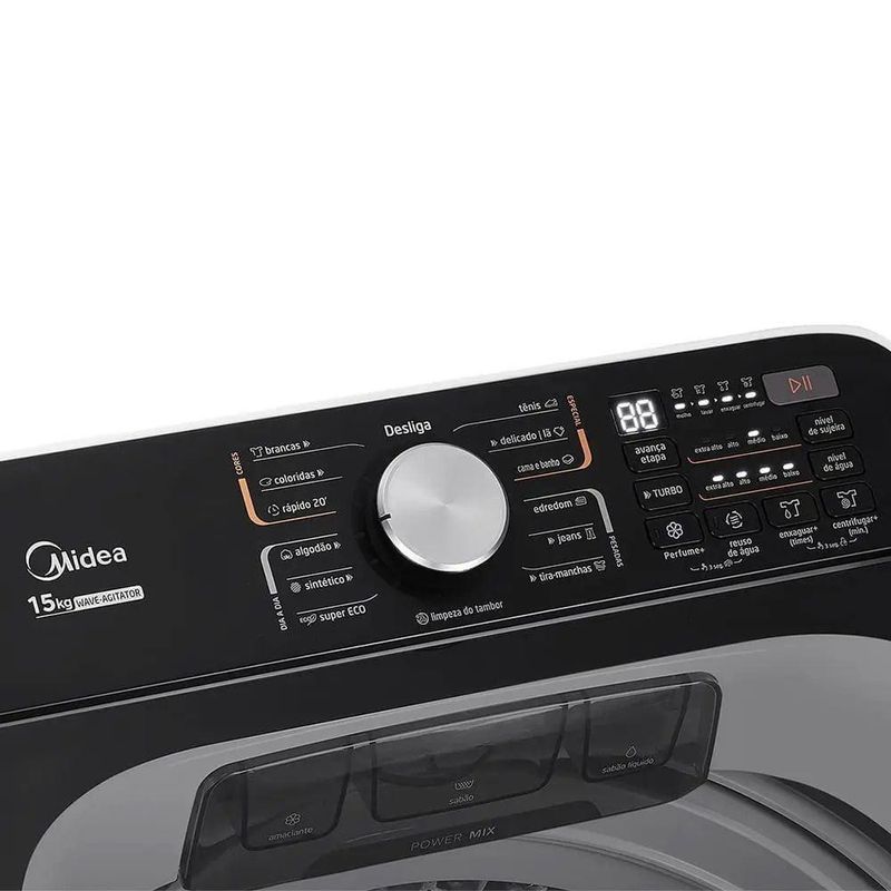 Transforme a sua lavanderia com a Máquina de Lavar Roupa 15kg MA512 Midea: menor consumo de água da categoria, tecnológica, grande em capacidade e compacta no design. Com uma combinação de atributos que vai transformar sua rotina no dia a dia, essa máquina de lavar 15kg conta com painel digital e diversas funções para um controle total e consumo consciente. Seu anatômico agitador Wave, em conjunto com o filtro de fiapos em aço inox, trabalha em harmonia para entregar lavagens impecáveis. Dos seus treze programas de lavagem e dez funções adicionais, destacam-se o programa Rápido 20', para roupas limpas em apenas 20 minutos, e as funções Perfume+, para roupas mais cheirosas, e Power Mix Dispenser, que mistura o sabão e o amaciante antes de entrar em com suas roupas, evitando manchas. O sistema anti-impacto proporciona um fechamento suave da tampa, evitando acidentes e impactos bruscos. capacidade: 15 | tipo de carga: carga | alimentação: ac | tipo de maquina: automatica | cor: branco | voltagem: 127