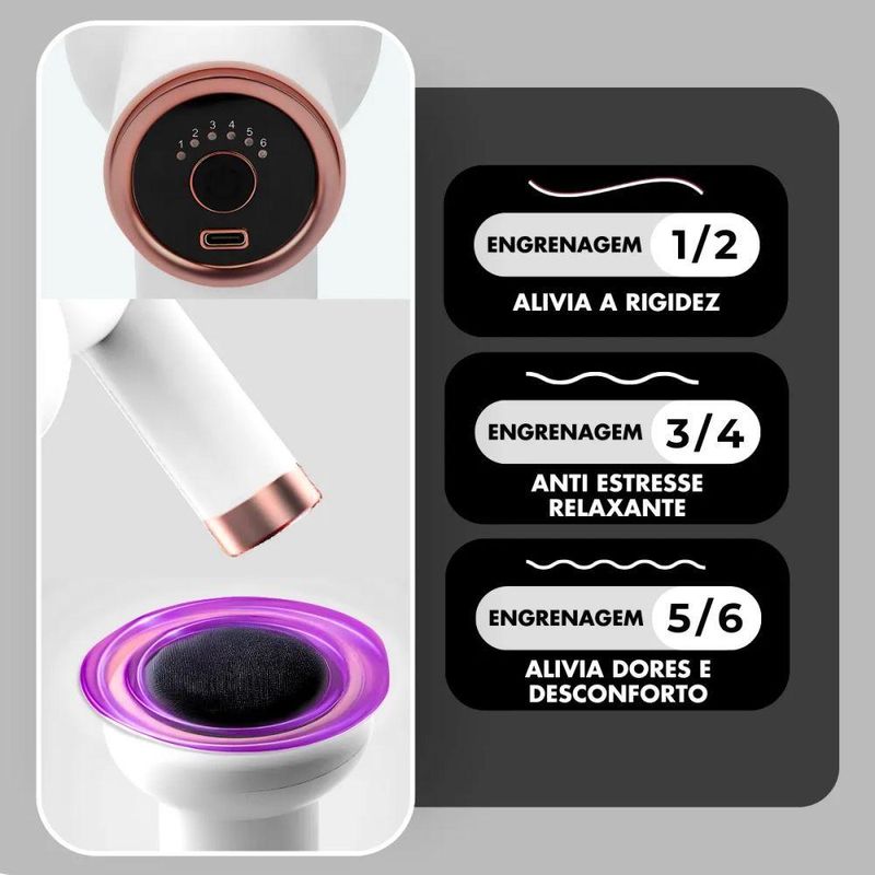 - 6 Velocidades Ajustáveis: Permite escolher a intensidade ideal de acordo com a área do corpo e nível de sensibilidade.