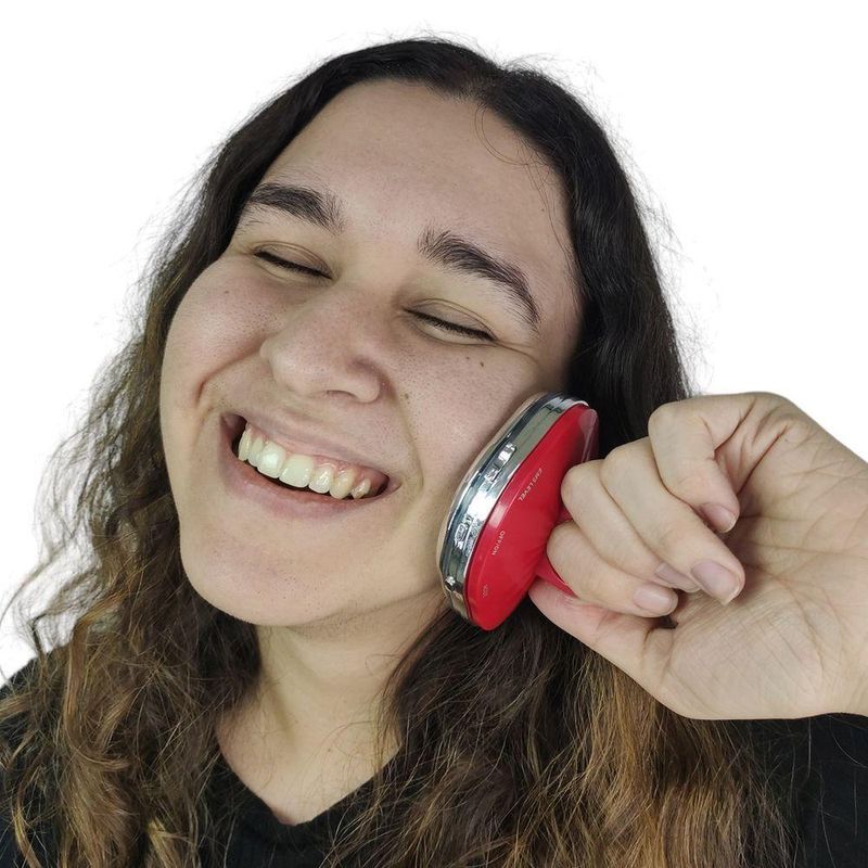 O produto não pode ser usado durante o carregamento. O massageador acende uma luz indicadora vermelha ao carregar, ao terminar o carregamento fica verde.Características:Massageador Facial Elétrico